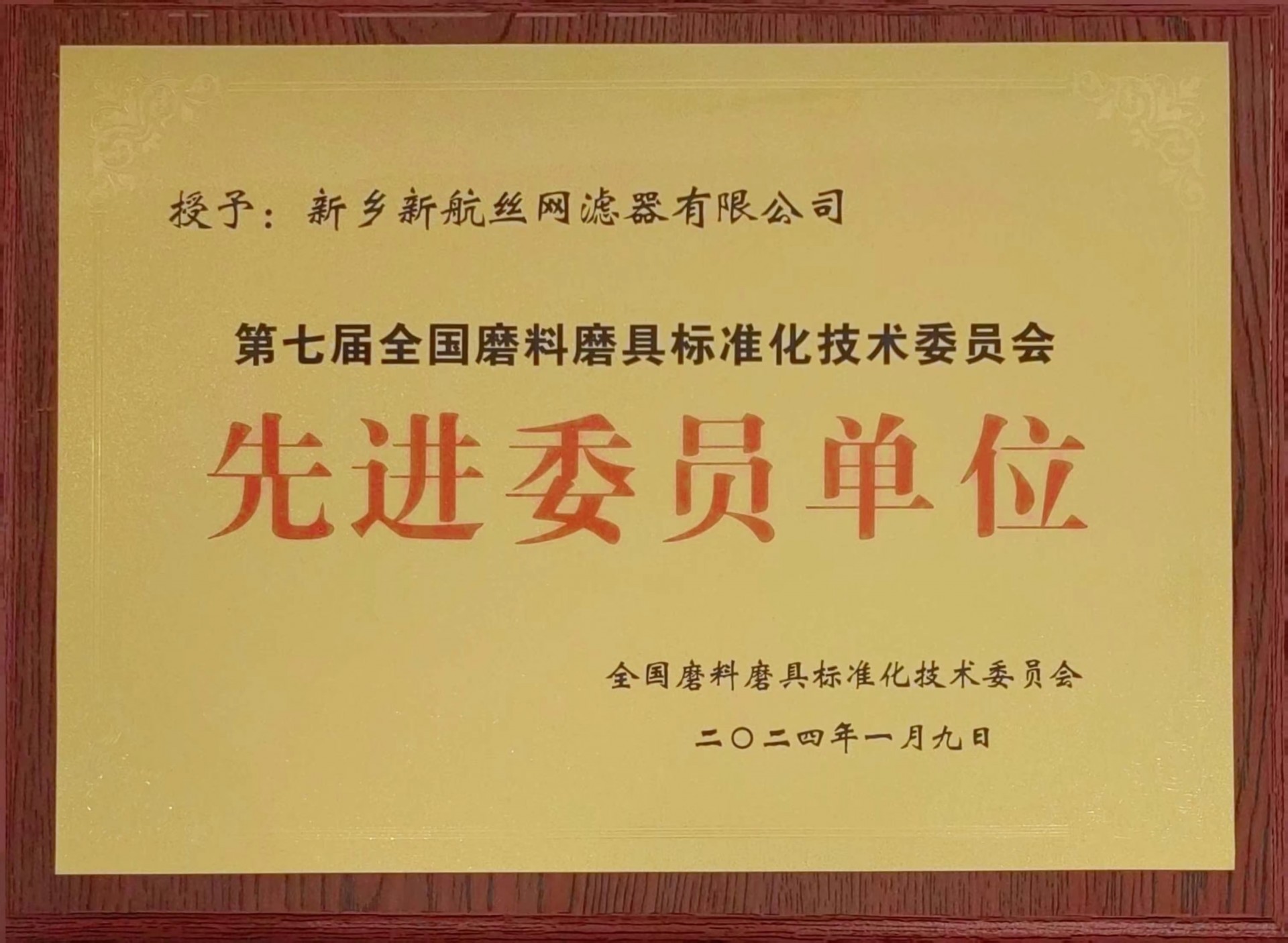 全國磨料模具標準化技術委員會先進委員單位 全國磨料磨具標準化技術委員會 2024-01-09 永久
