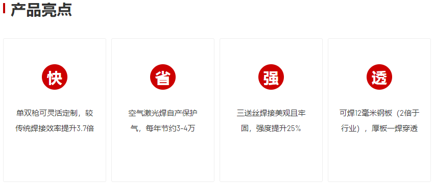 詳細(xì)信息 肯普森空氣激光焊,不用買氣的激光焊,自產(chǎn)高純度惰性保護(hù)氣,可焊接0.5-12毫米厚板材,機(jī)器選用韓國(guó)進(jìn)口多級(jí)渦旋沖突分離式過濾,帶有高精密制氣機(jī),8毫米寬焊道,單面焊雙面成型,多旋防飛濺焊槍,保護(hù)鏡片重復(fù)利用耗材更低!可自由切換單送絲、雙送絲及三送絲,焊道寬度、飽滿度有大幅提高,還可實(shí)現(xiàn)焊道堆高效果真正的焊接神器,從薄板到厚板,一機(jī)搞定!不用買氣的激光焊,效率高更省錢!