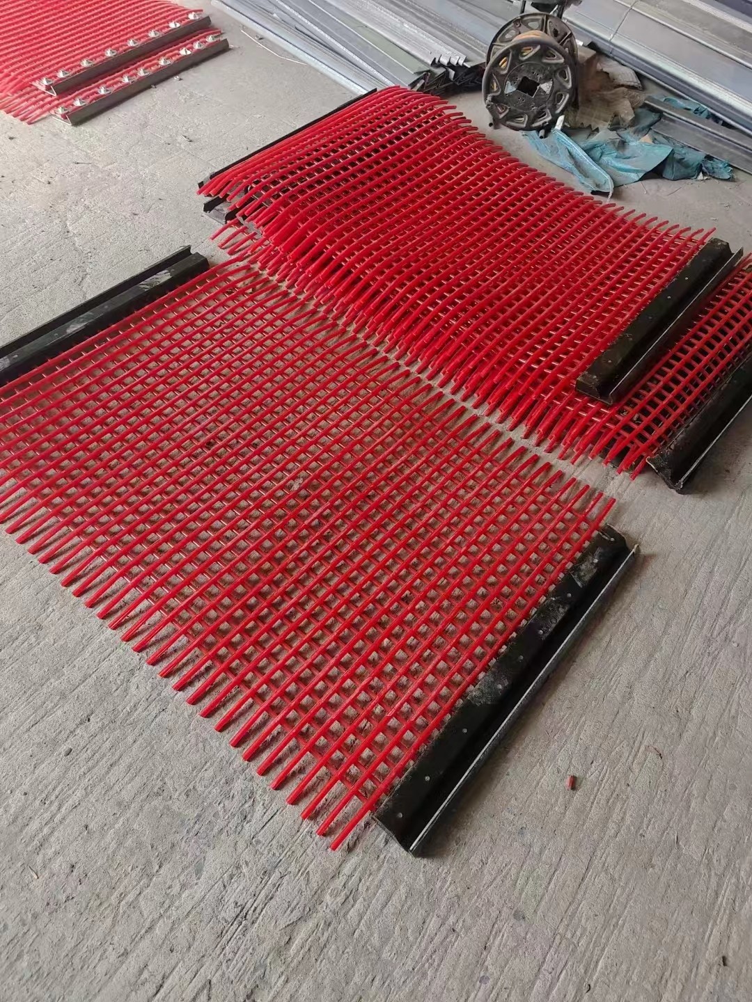 聚氨酯篩網適用范圍廣,適用動篩機并可量機制作。聚氨酯篩網應用于水電站、建材及其它金屬選礦業。0.1mm—170mm范圍內各種物料的篩分,無論干篩、濕篩都毫不影響篩分效率。對0.5m—3mm范圍內的脫水、脫介篩、更加充分地顯示了聚氨酯篩面的優越性。產品耐水、耐腐蝕、耐老化,更換維護方便。聚氨酯密度?。?.32kg/m3),重量輕于金屬篩面,能降低生產單耗,因此聚氨酯篩網能適應篩機大型化發展要求。 澆注工藝,對聚氨酯篩網來說主要是模具的裝配,經過表面脫模處理后,放到骨架上,平臺溫度升至一百一十一攝氏度。聚氨酯篩網的澆注所需二氯、二氨基二丙烷等擴鏈劑的應用,根據生產條件的不同,具體的澆注方法可采用手工與機械兩種。 聚氨酯篩網是一種以聚氨酯為質料出產的網狀成品,主要應于洗煤廠、焦化廠、礦山、電廠、疏浚公司、冶金、石油、石化等公司。 聚氨酯篩網是一種以聚氨酯為質料出產的網狀成品.篩板的孔狀為:條縫、矩形、圓形、正方形.酯篩板比不銹鋼篩板一次性投資高(約2倍),但因為聚氨酯篩網壽數是不銹鋼篩板的3~5倍,并且維修和替換次數少,所以總成本并不高,經濟上也是很合算的。 聚氨酯篩網的吸振性能好,消聲能力強,可減少噪音,并可使篩上物在振蕩的過程中不易破碎。因為聚氨酯二次振蕩的特色,聚氨酯篩網具有自整理效果,因而篩分效率高。 |