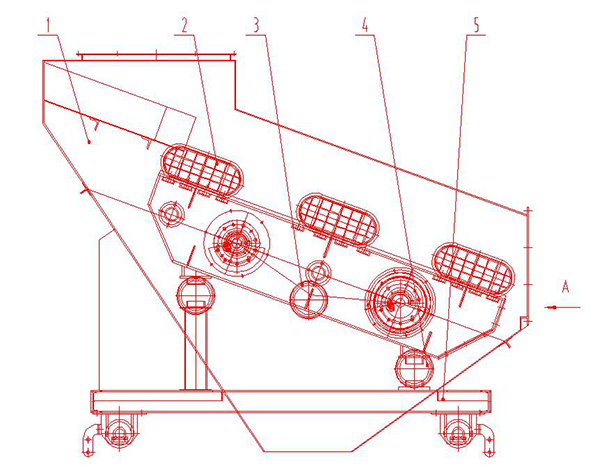詳細(xì)信息 一、產(chǎn)品簡介 XFPS復(fù)頻環(huán)保篩是鑫鋒公司瞄準(zhǔn)鋼鐵行業(yè)節(jié)能減排和低碳冶金等前沿課題和高端領(lǐng)域,研發(fā)的一種新型篩分設(shè)備,適用于冶金行業(yè)的冷燒結(jié)礦、焦炭、塊礦篩分。具有功率小,處理量大,篩分效率高,全密封等特點(diǎn)。 二、工作原理及結(jié)構(gòu)特點(diǎn) 篩機(jī)振動單元密封在罩體內(nèi),密封罩體和機(jī)架不參與振動。整機(jī)采用靜態(tài)密封,密封簡單容易,密封效果好,杜絕揚(yáng)塵,符合環(huán)保。 篩機(jī)振動單元由兩臺電機(jī)帶動兩組激振器,兩組激振器必須反向運(yùn)行,使振動單元產(chǎn)生直線運(yùn)動軌跡。配合棒條篩板和特定的頻率使篩分效率達(dá)到*佳。 每個振動單元由于參振質(zhì)量小、設(shè)備裝機(jī)容量降低,具有較好的節(jié)能效果。 采用多段篩面振動,每段都是一個獨(dú)立的振動單元。通過分段控制,實(shí)現(xiàn)了篩板變頻,變幅,變軌跡運(yùn)動,達(dá)到**篩分的目的。針對小于5mm的細(xì)小物料的篩分更為**。 結(jié)構(gòu)特點(diǎn): 1.采用多段獨(dú)立篩面振動而篩箱和機(jī)架不振動的運(yùn)動方式,多段篩面各自獨(dú)立振動; 2.采用單層雙面錐形懸臂棒條篩板;有特殊的自清理裝置。 3.采用快速拆卸式的密封結(jié)構(gòu); 4.*小的功率配置,能耗降低; 5.*小的動、靜載荷,降低對基礎(chǔ)的沖擊力; 6.激振器、篩板更換維護(hù)方便; 7.任意組合篩孔,取不同物料,特別適合用于燒結(jié)系統(tǒng)。 8.激振器采用獨(dú)立可拆分結(jié)構(gòu)。 三、安裝 安裝前,要檢查零部件是否完好、齊全。并對篩機(jī)安裝基礎(chǔ)進(jìn)行**清理檢查。 為防止積水和彈簧間堆積灰塵雜料。四個彈簧支承面、傳動平臺支承面應(yīng)高出地面250-300mm。 安裝基礎(chǔ)上的預(yù)埋鋼板和地腳螺栓由用戶自備。四個彈簧支承座下的預(yù)埋鋼板須在同一水平面內(nèi),在長度方向上的平面誤差不小于5mm。在寬度方向不大于2mm。 彈簧在安裝前,應(yīng)對外形尺寸及剛度值進(jìn)行檢查,以保證各組彈簧的剛度和高度保持一致。彈簧安裝好后要求所有彈簧與上下支承面保持垂直。 激振器與篩箱在出廠時已裝好并一起發(fā)運(yùn),安裝現(xiàn)場須對原裝配情況進(jìn)行檢查,并重新緊固連接件,若安裝時已超過設(shè)備出廠時間六個月,應(yīng)將激振器拆開將各零件清洗后重新組裝,在軸承的迷宮槽內(nèi)注入適量的2#鋰基脂。重新安裝激振器時,要保證同軸各組偏心塊的對稱中心線在同一平面內(nèi)。振動器裝配完畢后,用手轉(zhuǎn)動偏心塊,如阻力過大或有卡死現(xiàn)象,必須找出原因加以調(diào)整。 安裝電機(jī)時,要保證電機(jī)中心線與篩箱上激振器的中心線同軸。空載時在垂直方向上前者應(yīng)以后者低2-3mm。 激振器潤滑油管與篩體連接須用軟管。 四、試機(jī) 開機(jī)前特別注意拆除彈簧座處連接板,使彈簧自由振動。 按激振器旋轉(zhuǎn)方向指示,調(diào)整電機(jī)接線。兩組激振器必須反向運(yùn)行。 激振器出廠時已加潤滑脂,試機(jī)無須再加。若安裝時已超過設(shè)備出廠時間六個月,應(yīng)將激振器拆開將各零件清洗后重新組裝,軸承內(nèi)注入適量的2#鋰基脂。 開機(jī)試運(yùn)行,檢查篩機(jī)運(yùn)轉(zhuǎn)是否平穩(wěn),是否有異響,若發(fā)現(xiàn)運(yùn)轉(zhuǎn)不正常或有撞擊聲。應(yīng)立即停車檢查排除。 五、使用和維護(hù) 電動機(jī)2臺為一組,必須反方向同時啟動。 振動篩上配有給料機(jī)時,先啟動篩子,運(yùn)行平穩(wěn)后,再啟動給料機(jī)。停車時,與啟動順序相反。待篩面上物料全部走過后才能停篩。 工作過程中應(yīng)經(jīng)常觀察篩機(jī)運(yùn)轉(zhuǎn)是否平穩(wěn),若發(fā)現(xiàn)運(yùn)轉(zhuǎn)不正常或有撞擊聲。應(yīng)立即停車檢查。如遇突然事故停機(jī)時,應(yīng)設(shè)法將篩面上物料排除,以免下次開機(jī)時帶料起動,影響使用壽命。 彈簧之間容易積聚礦粉和雜質(zhì),影響彈簧的正常工作,應(yīng)經(jīng)常用壓縮空氣進(jìn)行清理。 經(jīng)常檢查篩機(jī)上各連接螺栓緊固情況,若發(fā)現(xiàn)有松動應(yīng)及時擰緊。 篩子密封罩上設(shè)有觀察蓋,經(jīng)常檢查篩板與襯板的磨損情況,若發(fā)現(xiàn)磨損嚴(yán)重或關(guān)鍵部分出現(xiàn)裂縫,應(yīng)及時更換或修補(bǔ)。 篩子密封罩兩側(cè)設(shè)有拆卸篩板固定螺栓的橡膠蓋,拆下橡膠蓋,可直接拆卸篩板固定螺栓,人無須進(jìn)篩。打開快拆密封蓋,從此吊出篩板更換。完成后,恢復(fù)快拆密封蓋和兩側(cè)橡膠密封蓋。 篩子密封罩兩側(cè)設(shè)有加油蓋,打開加油蓋,可看到兩更加油軟管,兩根軟管內(nèi)加2號鋰基潤滑脂,每臺篩有四根加油軟管,都必須加油。激振器每天加油一次,加油量為內(nèi)腔體積的三分之一至三分之二,過量會使軸承溫度升高。軸承溫升不大于45度。激振器每半年小修一次,每年大修一次。 六、外形示意圖 圖片2 1-篩體2-篩板緊固螺栓安裝蓋3-振動器加油蓋 4-更換減震彈簧蓋5-移動臺車6-傳動系統(tǒng) |
