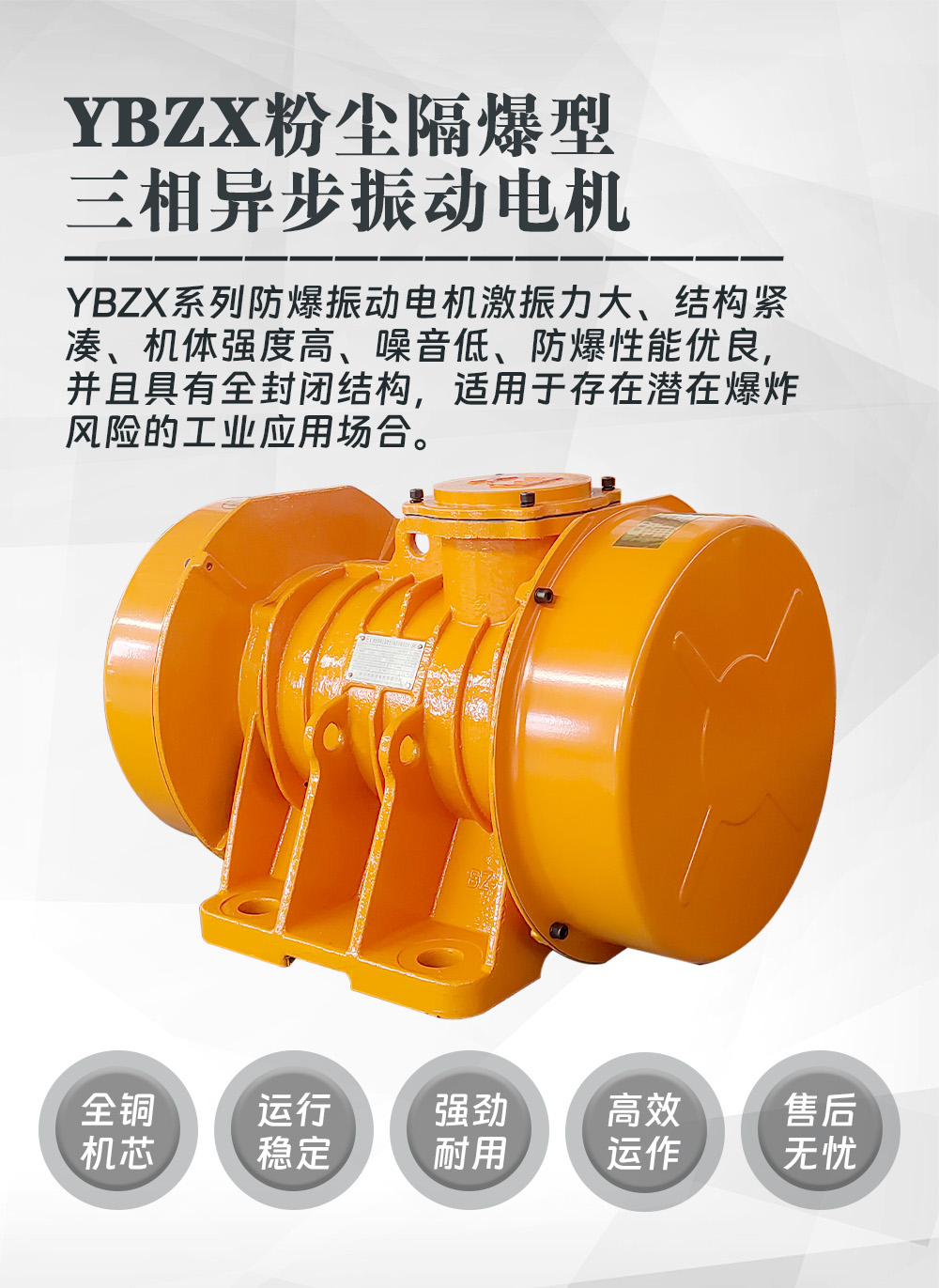 YBZX系列隔爆型三相異步振動電機具有以下特點: