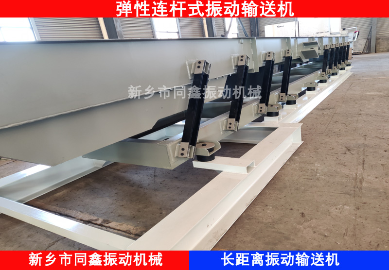 彈性連桿振動輸送機是一種實用性很強的輸送機,特別對長距離輸送和熱工作的輸送都體現了它的特點,該機在振動狀態時具有平穩性和可靠性。彈性連桿式振動輸送機具有低頻率大振幅特點。大輸送量和長距離輸送的振動輸送機,應優點考慮這種驅動形式。