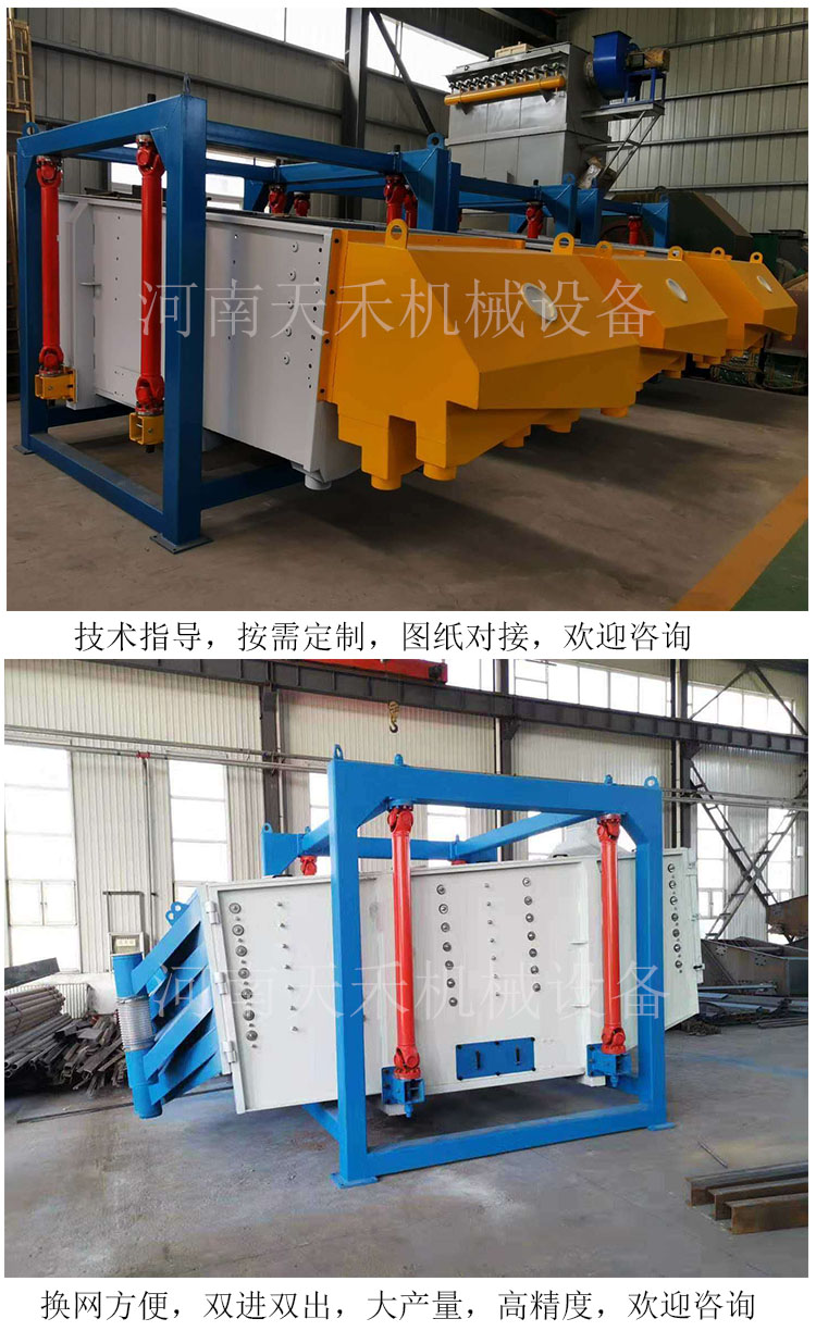 廣泛用于化工及新材料、冶金、金屬粉末、礦物粉末、食品、鹽、糖、磨料、飼料等行業(yè)。 通過(guò)方型回旋篩將激振器發(fā)生的回旋運(yùn)動(dòng),傳至篩面,從而使物料在篩機(jī)前部迅速分散,從而達(dá)到篩分之目的。