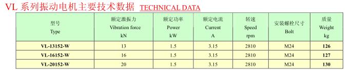 VL系列振動電機,功率1.0~2.2KW,2、4極,激振力為13~35KN,共計10個規格。本系列振動電機主要適用于有色金屬礦等行業,與高頻VL系列振動電機篩配套,替代進口的同類振動電機。