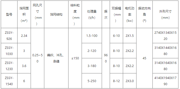 ZSSY振動篩技術參數