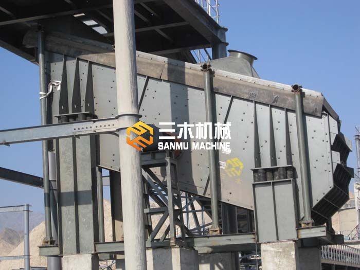 該系列篩機為座式安裝。曬面傾角的調整可通過改變彈簧支座位置高度來實現。