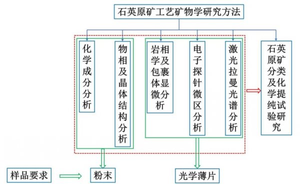 近期,國家知識產權局公布了中國建筑材料科學研究總院有限公司的一種石英原礦工藝礦物學分析方法、一種判斷石英原礦能否作為高純石英原礦的方法。發明將所述石英原礦進行制樣,其中粉末樣品的制樣方法包括依次進行破碎、濕法研磨、過濾濃縮和干燥;將所得粉末樣品進行化學成分分析、物相成分分析和晶體結構分析;將所得光學薄片進行電子探針微區分析、激光拉曼光譜分析、巖相學顯微分析和包裹體顯微分析。