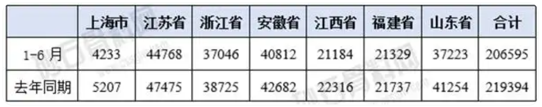 1、華東地區1-6月測算砂石需求量
