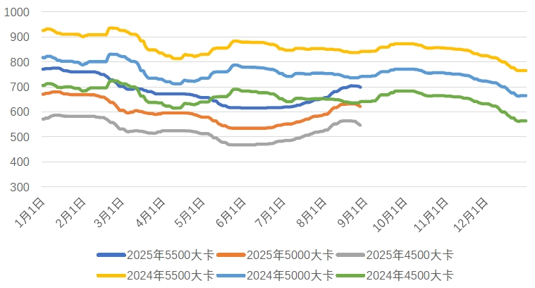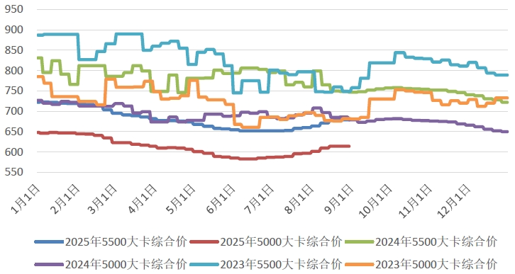 本周,南方高溫支撐火電負(fù)荷高位,但重大活動(dòng)籌備疊加高耗能限產(chǎn),非電需求延續(xù)疲軟。主產(chǎn)區(qū)強(qiáng)降雨、安監(jiān)政策收緊、產(chǎn)能核驗(yàn)及月度任務(wù)收尾致供應(yīng)階段性收縮。需求季節(jié)性回落疊加大型集團(tuán)外購(gòu)價(jià)的再次下調(diào)使市場(chǎng)情緒進(jìn)一步轉(zhuǎn)弱,終端普遍持觀望態(tài)度;坑口、港口逐日調(diào)價(jià),中低卡煤種降幅顯著。預(yù)計(jì)后期,北方入秋后日耗拐點(diǎn)將現(xiàn),電力需求季節(jié)性回落,南方局部高溫延緩降幅;隨著重大活動(dòng)及北方汛期結(jié)束疊加優(yōu)質(zhì)產(chǎn)能釋放,供應(yīng)彈性或?qū)⒃鰪?qiáng)。綜合判斷,短期內(nèi)終端在庫(kù)存高位、長(zhǎng)協(xié)穩(wěn)定及進(jìn)口補(bǔ)充下,市場(chǎng)煤需求有限,供需基本趨于偏寬松格局,現(xiàn)貨價(jià)格將延續(xù)弱勢(shì)。建議繼續(xù)做好中長(zhǎng)期合同履約,保持適量剛需現(xiàn)貨采購(gòu),通過(guò)優(yōu)化庫(kù)存結(jié)構(gòu)等措施防范風(fēng)險(xiǎn),保障電力供應(yīng)安全。同時(shí),近期鐵路運(yùn)費(fèi)優(yōu)惠政策面積減少、力度減弱,根據(jù)鐵路運(yùn)費(fèi)優(yōu)惠政策變化情況,合理優(yōu)化陸運(yùn)煤運(yùn)輸路線。
