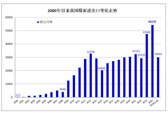 海關(guān)總署9月8日公布的數(shù)據(jù)顯示,2025年8月份,全國(guó)煤炭進(jìn)口4273.7萬(wàn)噸,較去年同期的4584.4萬(wàn)噸減少310.7萬(wàn)噸,同比下降6.8%;較7月份的3560.9萬(wàn)噸增加712.8萬(wàn)噸,環(huán)比增長(zhǎng)20.0%。