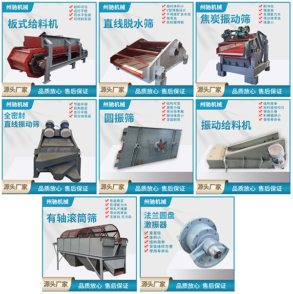 公司主要產品如下:振動篩及圓振篩、直線篩、脫水篩、礦用振動篩、香蕉篩、高頻篩等大型篩分設備,以及給振動篩相關配套的各類激振器:箱式激振器、法蘭式激振器、稀油激振器、自同步激振器、強制同步激振器、塊偏心激振器等相關的設備配件。以及螺旋輸送機、斗式提升機、振動給料機、振動電機、傳動軸等相關機械設備。