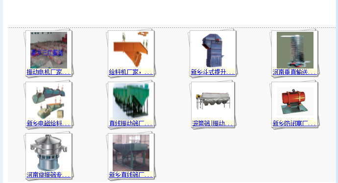 公司主要產品有:振動篩、振動電動機、提升機、輸送機四大系列產品。