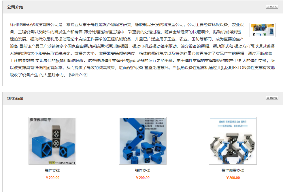 徐州牧豐環保科技有限公司是一家專業從事于高性能聚合物配方研究,橡膠制品開發的科技型公司,公司主要經營環保設備、農業設備、工程設備以及配件的研發生產和銷售 篩分處理是物理工程中一項重要的處理過程。隨著全球經濟的快速增長,振動機械得到迅速的發展。振動篩分是利用振動理論來完成工作要求的工程機械設備,并且已廣泛應用于工業、農業、國防等部門,成為重要的生產設備 目前該產品已廣泛銷往多個國家自由振動系統通常通過激振器,振動電機或振動軸來驅動,篩分設備的振幅,振動形式和 振動方向可以通過激振系統的規格大小和安裝形式來決定。激振力大小,激振器安裝傾斜角度,篩體的傾斜角度以及篩體的重心位置決定了實際產生的振幅,通過不斷改善上述的參數來 實現最佳的振幅和輸送速度。這些理想彈性支撐使得振動設備的運行更加平穩。由于彈性支撐的支撐臂結構能產生很 大的彈性變形,所以使支撐具有很低的固有頻率,從而提供了高效的減震效果,進而保護設備 基座免遭破壞。當振動設備在起停機通過共振區時ESTON彈性支撐有效地吸收了設備產生 的大量殘余力。