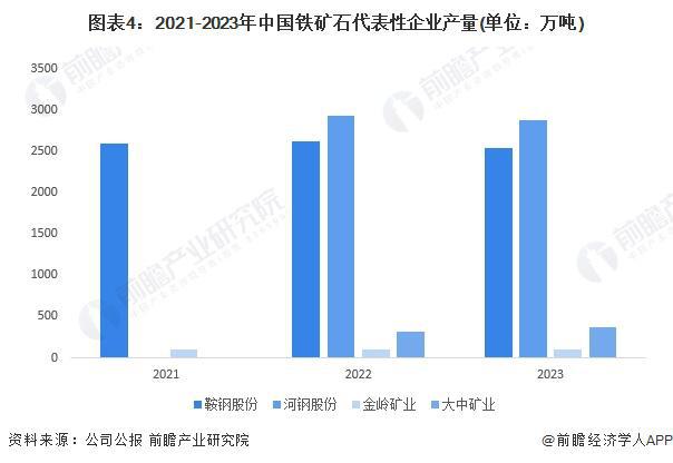 2021-2023年,以鞍鋼股份、河鋼股份、金嶺礦業、大中礦業為代表的主要鐵礦石生產企業,鐵礦石生產規模總體保持穩定。從企業布局情況來看,鞍鋼股份為代表的領先企業仍在進一步加大鐵礦石布局力度。