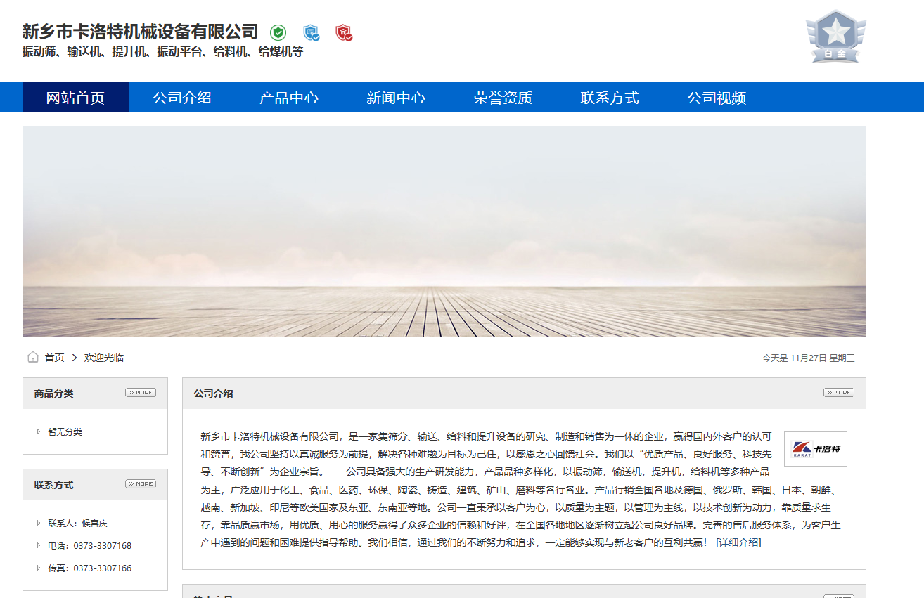 新鄉市卡洛特機械設備有限公司,是一家集破碎篩分給料提升輸送設備的研究、制造和銷售為一體的企業。“過硬的質量,良好的信譽,優良的服務”是我們公司恪守的企業宗旨,是卡洛特人孜孜不倦的追求!公司根據市場發展的需要在進一步完善定型產品的基礎上,不斷開發出新產品和引進優良的生產技術來滿足市場發展需求,提高市場競爭力!生產工藝、產品設計優良,制作精細,性能可靠,暢銷國內外,產品及售后服務均在同行中享有較高聲譽,并深受廣大用戶的信賴和贊賞!